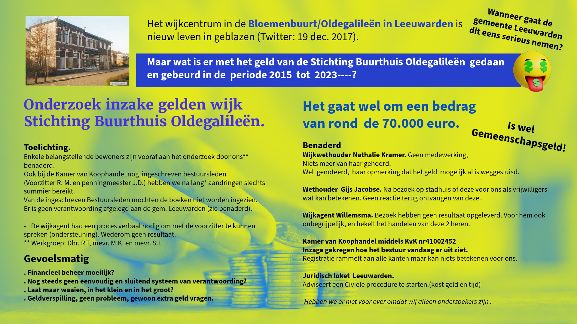 Bewoners Oldegalileën op zoek naar de schat – Leeuwarder wethouders tonen geen interesse in verdwenen 70.000 euro