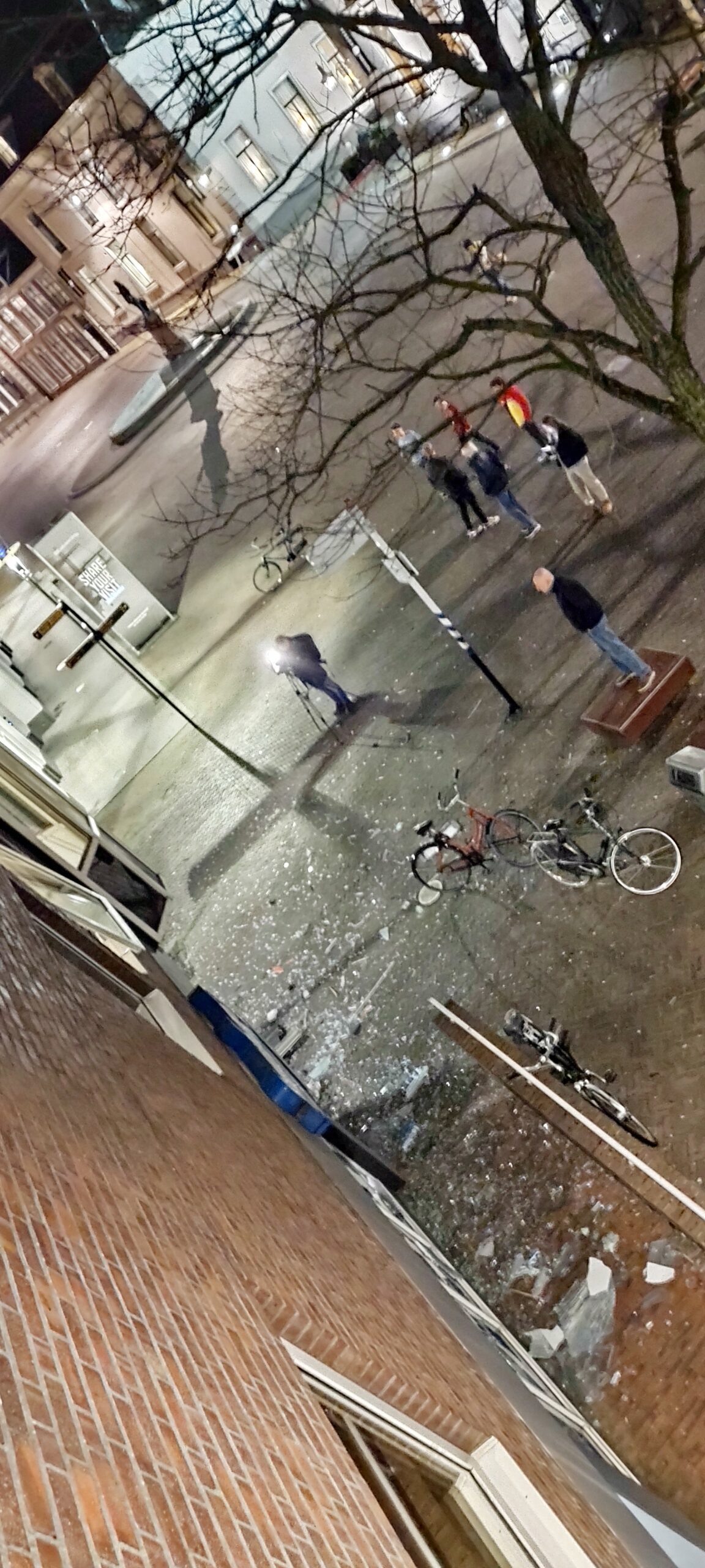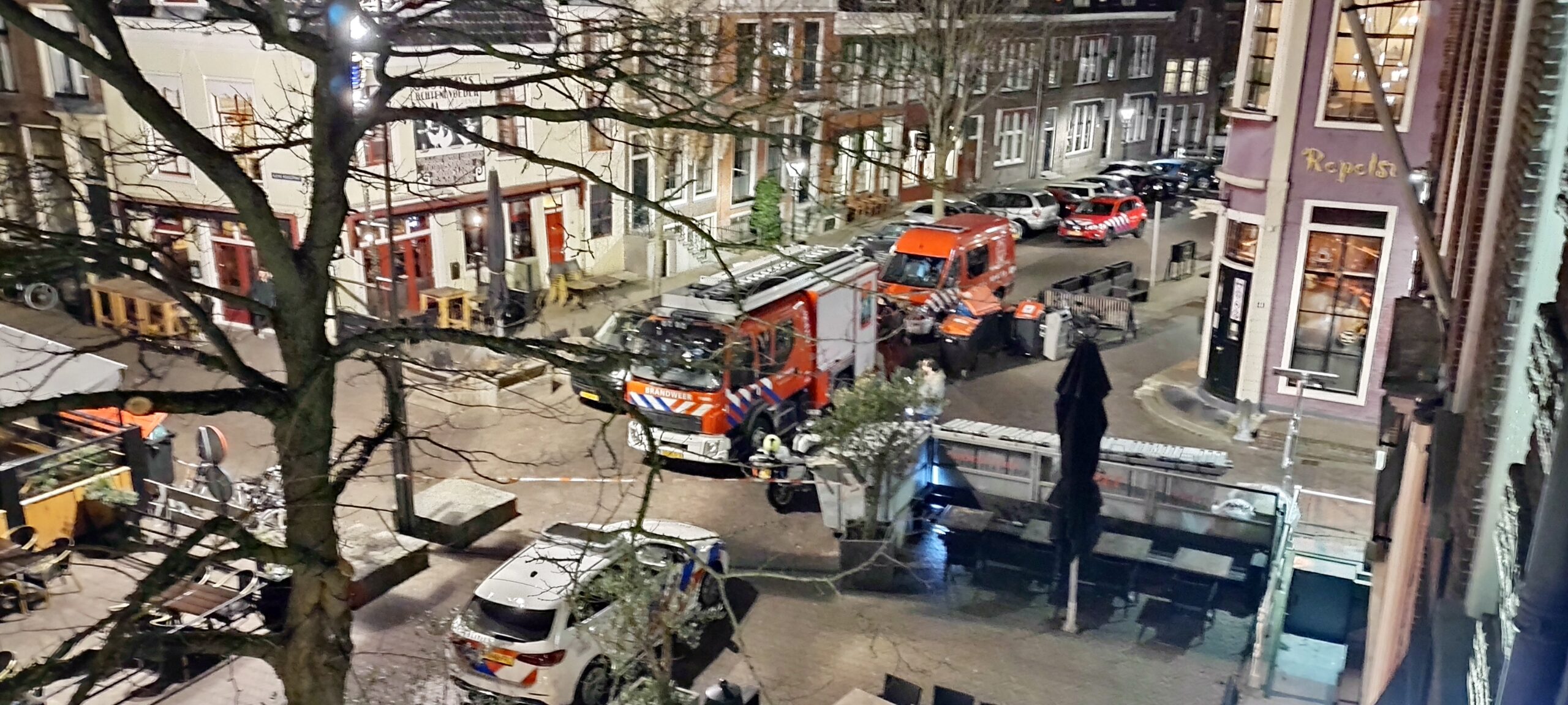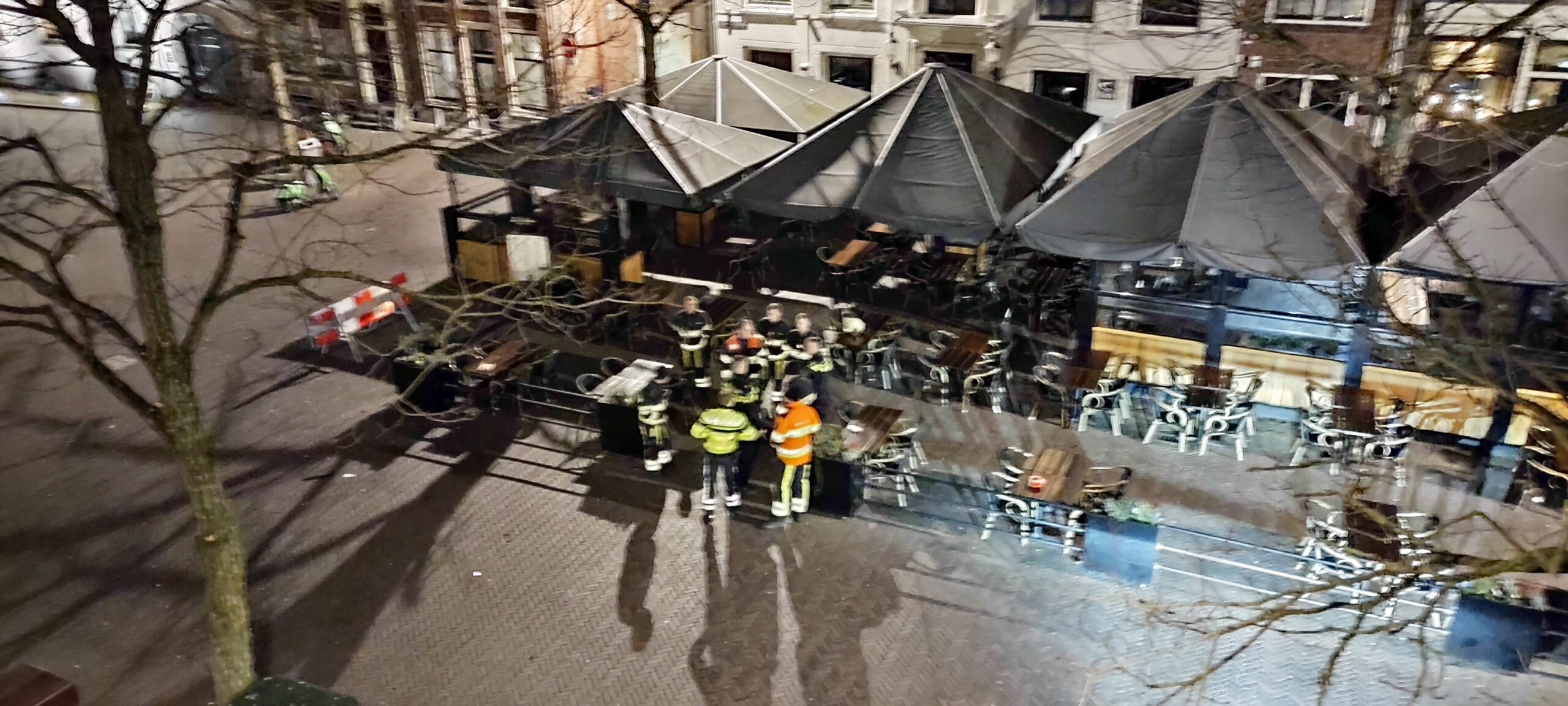 De schade is nog niet opgemaakt maar loopt in de tonnen. Het Gouverneursplein is afgezet.