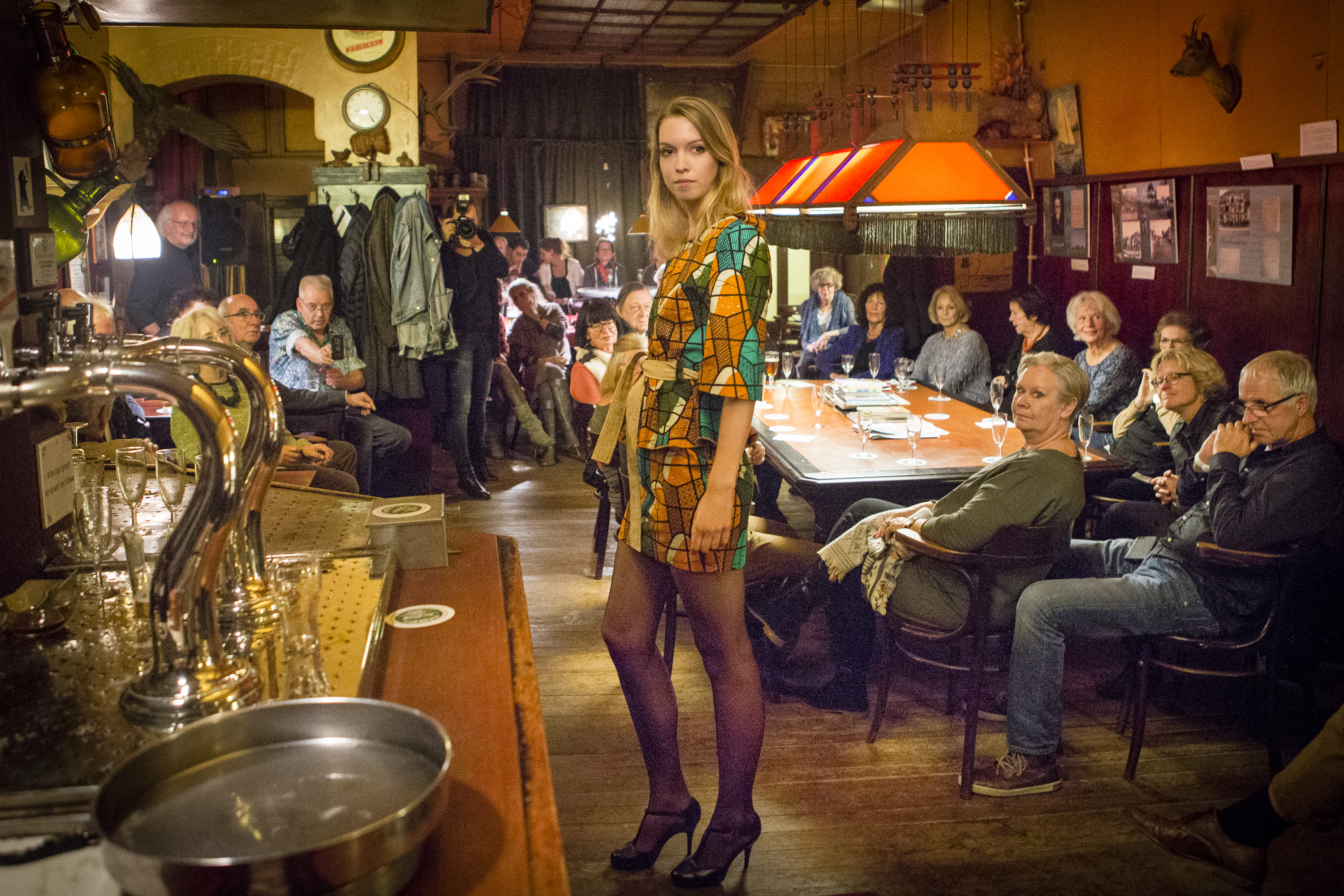 Mode-ontwerper Hans Noordstrand haalde gisteravond vijf mannequins naar het Leeuwarder café De Ossekop waar veertig modecreaties werden getoond. Het was een nog nooit eerder vertoond evenement in het... ‘Meneer. U bent in overtreding!’