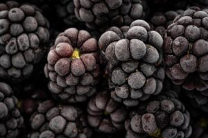 Kook de bramen samen met 50 gram suiker en een paar eetlepels water. Vermeng de maïzena met een beetje water. Voeg dit toe aan de bramen en laat dit even doorkoken. Wrijf de warme bramen door een zeef. Giet de puree in 4 schone jampotjes en laat het afkoelen. Klop in een kom de roomkaas los met het zout, de vanillesuiker en de rest van de suiker. Roer één voor één de eieren er door en daarna de crème fraîche. Giet het mengsel op de bramenpuree in de jampotjes. Doe de deksels op de potjes. Zet de potjes in een ovenschaal. Vul de schaal met kokend water. Zet de ovenschaal met de potjes in een voorverwarmde oven (150 graden) en bak de cheesecakes in 35 à 40 minuten gaar. Laat ze daarna volledig afkoelen.