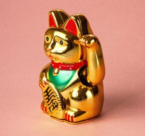 Gisterochtend zat er geen beweging meer in mijn Chinese kat. Geen echte kat, maar een goudkleurig exemplaar met een zwaaiend linkerpootje. De batterij zal wel leeg zijn, dacht ik maar ook nadat ik er een nieuw exemplaar had ingestopt ging zijn poot geen geluk naar me toe zwaaien. Want dat is wat deze katten doen.