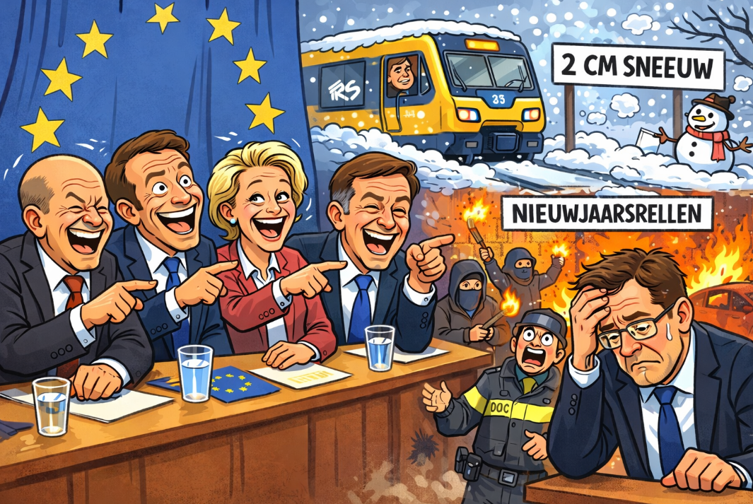 Oud en nieuw werd wereldnieuws, niet vanwege traditie of gezelligheid, maar vanwege chaos, vernieling en falend gezag. En alsof dat nog niet beschamend genoeg is, is een paar centimeter sneeuw tegenwoordig voldoende om treinen stil te zetten, wegen te blokkeren en complete regio’s te verlammen. Niet omdat het weer extreem is, maar omdat het systeem dat niet meer aankan.