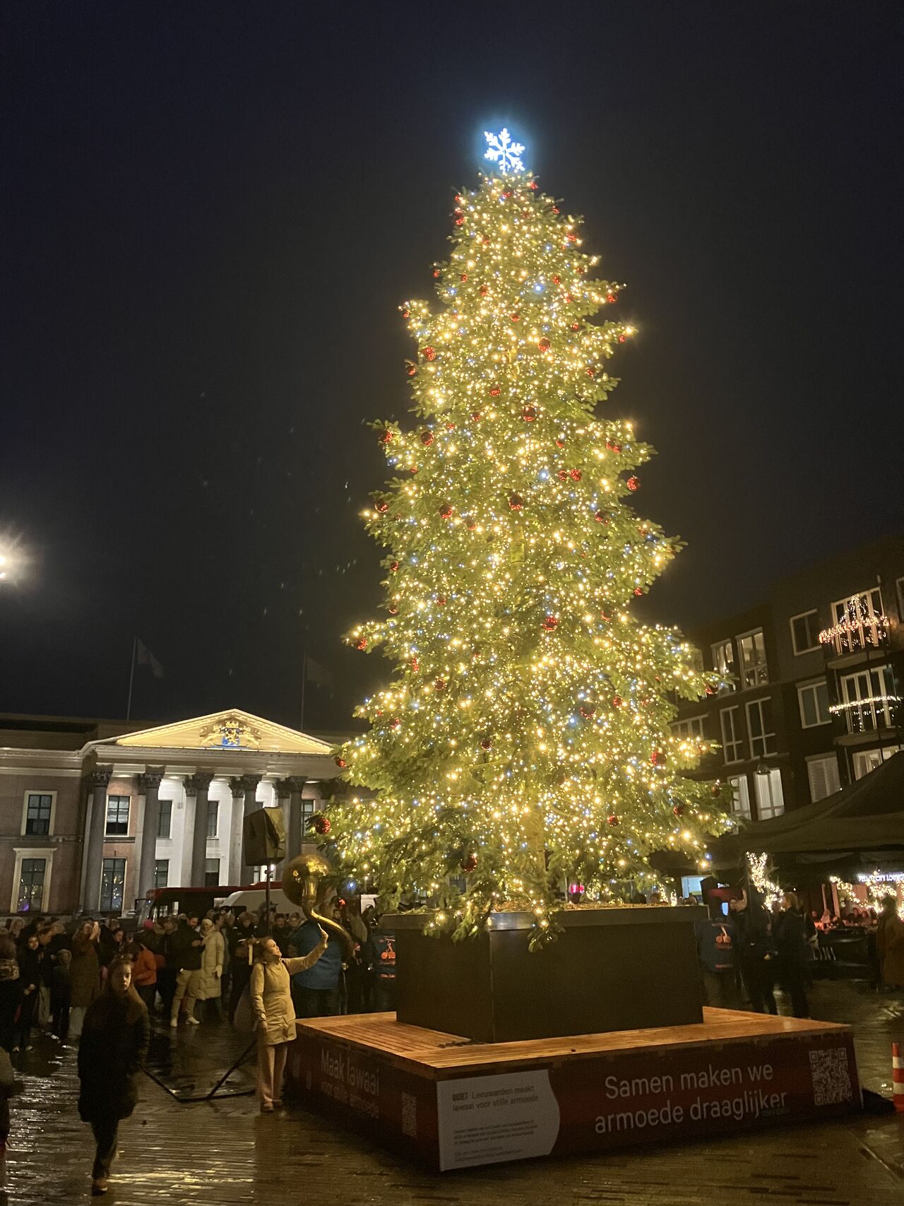 De boom moest daarom een echt “wow effect” hebben en mensen samenbrengen. De boom is met duizenden Led lampjes op een unieke manier verlicht. Deze laten we in de boom hangen de komende jaren. Zolang dat kan qua boom en groei.