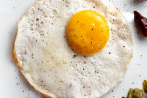 Snijd met behulp van een stekertje of een glas een rondje uit 1 van de sneetjes brood. Besmeer 1 kant van beide sneetjes brood met de mayonaise. Bak de sneetjes brood in de pan met de olie en het spekvet. Keer ze om als 1 kant gebakken is. Breek een ei in het gat van het ene sneetje brood. Draai het vuur laag en doe een deksel op de pan tot het eiwit gestold is. Schep het sneetje zonder ei op een bord. Bestrijk dit met de ketchup. Leg de plakken gebakken spek erop. Leg het sneetje brood met het ei er bovenop. Snijd de sandwich eventueel doormidden.