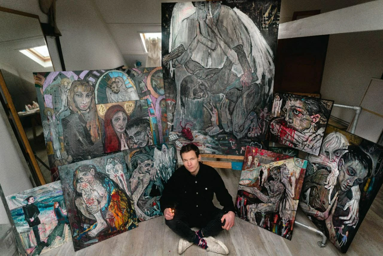 Te Zalen Schaaf/Boel in Leeuwarden is aanstaande zaterdag- 13 & zondagmiddag 14 juli een indrukwekkende expositie te zien van de in 2022 uit Oekraïne gevluchte jonge, talentvolle kunstschilder Oleksii. Na ontberende omzwervingen kwam hij in Leeuwarden terecht. Zijn in z’n tienerjaren en in de afgelopen twee jaar gemaakte schilderijen tonen indringende beelden die doen denken aan sommige schilderijen van Käthe Kollwitz, Jeroen Bosch, Hans Baluschek.