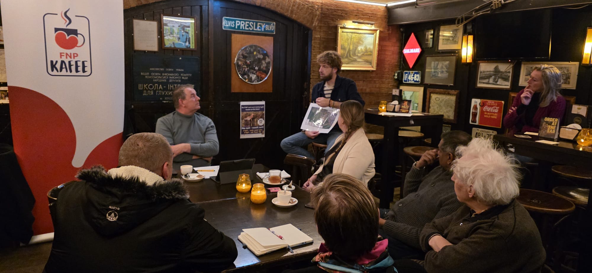 ‘We wachten op een boiler, tweeënhalf jaar geleden zijn de kachels opgemeten en daarna hebben we niemand meer gezien, beloofde zonnepanelen zijn nog steeds niet geplaatst, de drainage deugt niet en het pleintje voor ons buurthuis is net een vuilnisbelt.’ Het loopt nog niet echt lekker met de verbouw van buurthuis De Kobbekooi in de wijk Wielenpôlle. In café Scooters, waar het tweede politiek café georganiseerd door de Leeuwarder FNP werd gehouden, benoemde wijkvertegenwoordiger Rinus Pel tal van pijnpunten waar zijn wijk al jarenlang mee worstelt. De eerste fase van de verbouwing is twee jaar geleden met enig feestgedruis gevierd, maar er zijn nog tal van zaken die om een oplossing vragen. Een van de grote problemen: Rinus Pel wordt ondanks verzoeken hiertoe niet teruggebeld vanaf het gemeentehuis. Pel: ‘Zelfs het toegezegde cadeau van Elkien hebben we nooit ontvangen.’