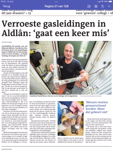 Is de Gemeente earder ek ynformeatte troch WoonFriesland oer de minne steat fan de gasleidingen yin Âldlân?