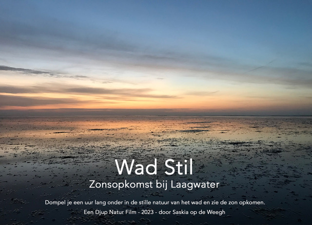Een uur lang ben je vanaf de bodem van de Waddenzee onderdeel van het natuurlijke fenomeen van de zonsopkomst bij laagwater. De film nodigt uit om bewust eens stil te staan bij de cycli van de natuur, de ongereptheid die er nog is en deze oernatuur in ons. Om de kracht ervan te ervaren en je onder te dompelen in de schoonheid van deze prachtige (de mooiste?) uitgestrekte natuurplek in Nederland, die ook nog voor een groot deel vrij is van menselijk geluid. Bewegend op de ritmes van eb en vloed en van zonsopkomst en -ondergang. Duik mee in dit dynamische geheel waar ogenschijnlijk niks gebeurt en toch alles steeds verandert vanuit je bioscoopstoel.