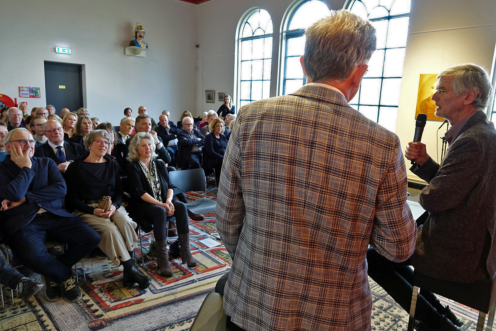 (foto: Ad Fahner; Bearn Bilker met twee oomzeggers van Zelle – onder: presentatie in het Historisch Centrum Leeuwarden)