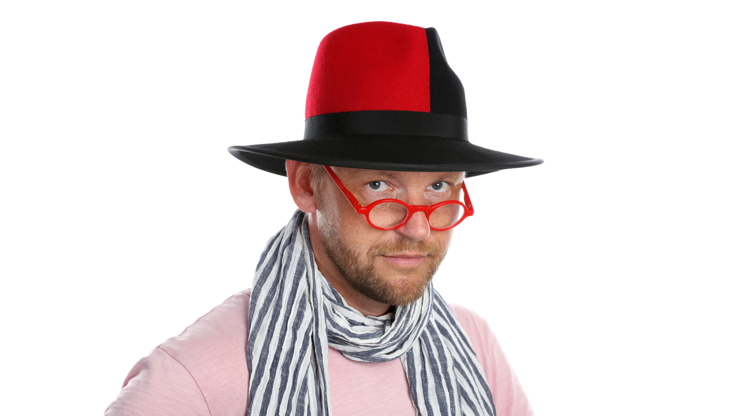 Koos van der Wal portretteerde ik een aantal keren voor zijn theaterproducties. Op mijn werkplek op de Emmakade 59 was hij een tijdje mijn buurman, toen hij hier een atelier kreeg, waar hij objecten en hoeden ging maken. De laatste jaren is hij zeer succesvol. Hij won met zijn hoeden een aantal prijzen en werkte samen met een bekende Nederlandse couturier. Hij maakt veel hoeden in opdracht en ze worden ook verkocht bij een aantal hoedenzaken in ons land. Daarnaast heeft hij een gestaag uitdijende collectie, die je beter kunt beschouwen als kunstobjecten. Samen met Koos ben ik een kunstproject gestart, waarin mensen worden geportretteerd met zijn hoeden. Het zijn geen platte modefoto’s. Dit resulteerde in een fotoboek en een stop motion video en we zijn nog lang niet uitgespeeld. Op de tentoonstelling zullen ook allerlei prachtige hoeden van Koos te zien zijn.