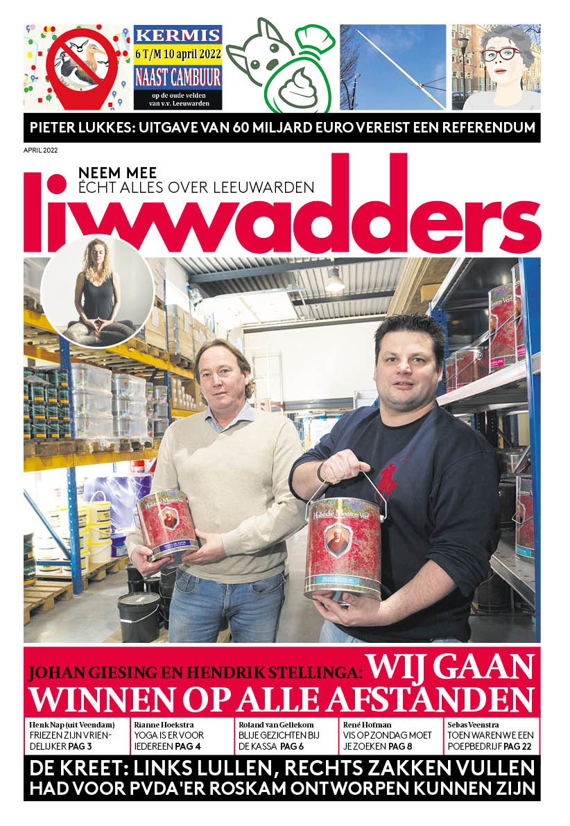 Het nieuwste nummer van het Stadsblad Liwwadders is weer verschenen. Met hierin Johan Giesing en Hendrik Stellinga over hun nieuwe verflijn, René Hofman over zijn nieuwe viszaak, Roland van Gellekom over de drukte bij de Budget Food en Sebas Veenstra over zijn poepbedrijf. En een overzicht rond de besluitvorming van de Hounspolder, politieke nabeschouwingen (over het historisch verlies van de PvdA) en veel meer. Liwwadders kan worden opgehaald bij de 170 bekende adressen in en rond Leeuwarden.