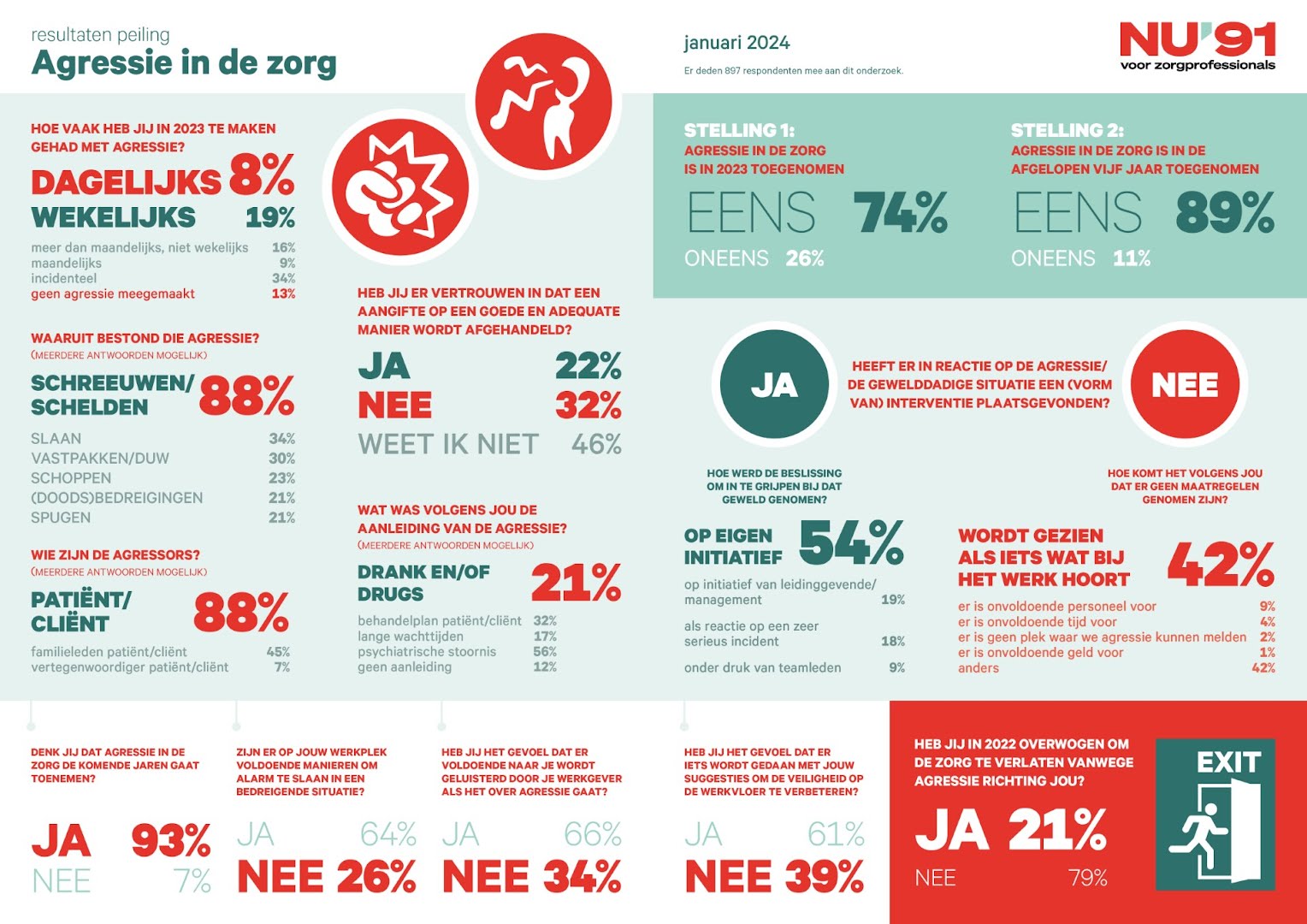 NIEUWEGEIN, 29 december 2023 – Meer dan de helft van de zorgprofessionals kreeg het afgelopen jaar maandelijks of vaker te maken met een vorm van agressie. Dat varieerde van schelden en schreeuwen tot aan spugen, doodsbedreigingen of fysiek geweld. Dit blijkt uit een peiling van NU?…