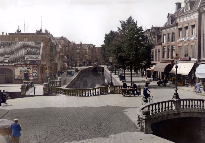 Op de ingekleurde plaatje is de winkel te zien van mijn overgrootvader op de voorstreek.