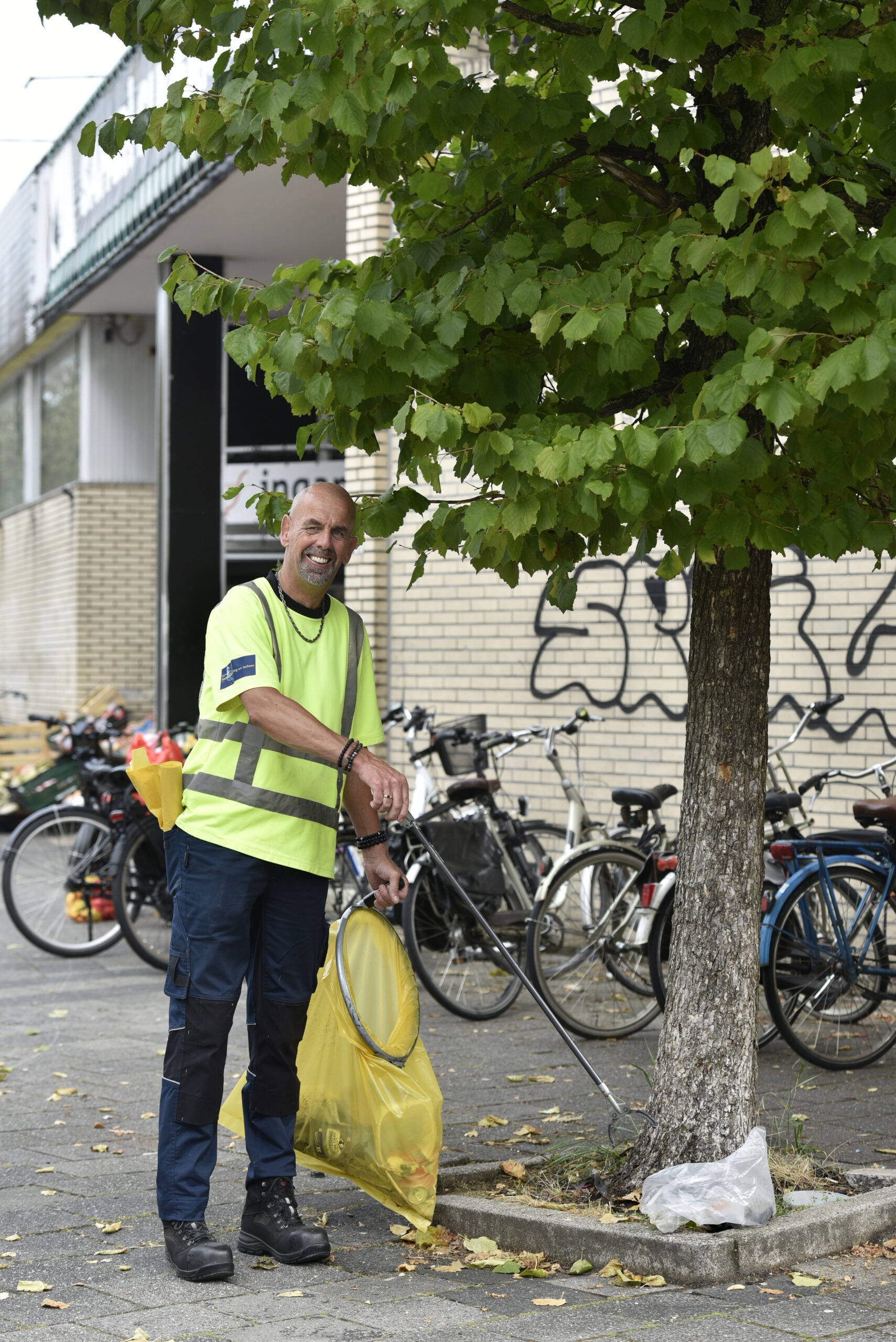 De wethouder met milieu in zijn portefeuille kan nog zulke mooie resultaten over de kwaliteit van de openbare ruimte ophoesten, Marcel Schouten denkt hier anders over. Hij ziet de dagelijkse praktijk. ‘Het zwerfvuil neemt toe en beslist niet af. Er zijn gebieden waar het steeds erger wordt.’ Schouten heeft ruime ervaring in het opruimwerk. Al ten tijde van de Dienst Sociale Werkplaats werkt hij voor de gemeente Leeuwarden. ‘Die was toen gevestigd aan de Edisonstraat. Van daaruit gingen we op pad. Eerst heb ik zo’n vier jaar in perken en plantsoenen geschoffeld, maar toen ik over kon stappen naar het vuil opruimen met de grijper heb ik die kans met beide handen gegrepen.’ Dit werk doet Schouten nu al ruim twintig jaar naar volle tevredenheid.