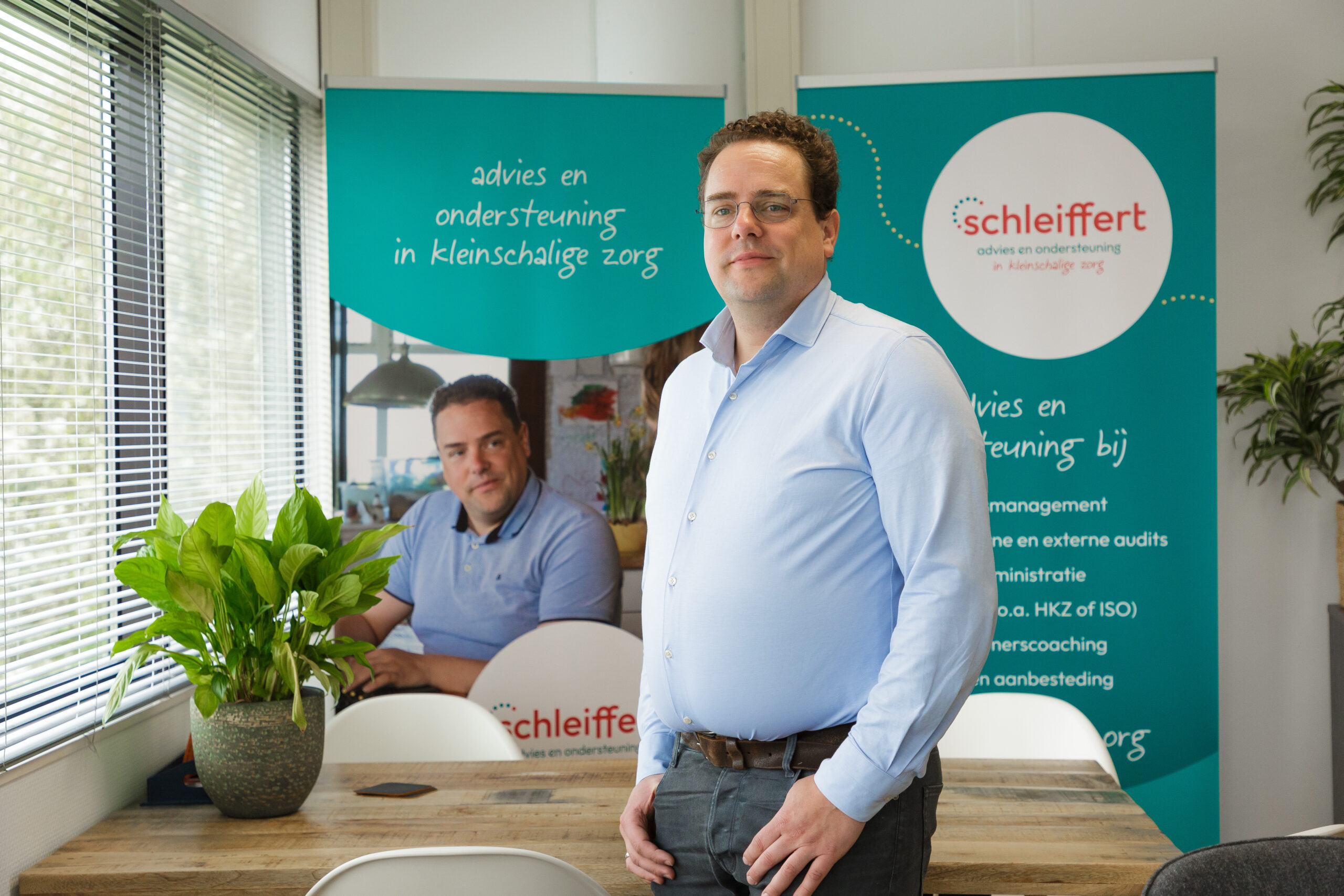 Die wirwar zorgt voor bedrijvigheid aan de Balthasar Bekkerwei. ‘Na drie à vier jaar volgt er weer een aanbestedingsprocedure voor de zorgondernemers. Dat is niet hun ding. Zij willen zorg verlenen.’ Schleiffert bracht recent samen met een andere spil in het werkveld veertien zorgverleners bij elkaar die een juridische procedure tegen de gemeenten aangingen en die wonnen al zijn klanten. ‘We hebben afwijzingsbrieven van de aanbesteding specialistische jeugdzorg verzameld en konden voorzichtig concluderen dat er van specifieke beoordeling nauwelijks sprake was. Gemeentelijke inkopers hebben steken laten vallen, er is niet in alle gevallen eerlijk geoordeeld in de procedure, concludeerde de rechter. We willen advies en ondersteuning geven met een rechte rug. Soms raad je af om bezwaar aan te tekenen, soms tast je af of je een zorgaanbieder als klant wilt. Het zijn ethische afwegingen die actief in ons werk gebruiken. Dit is wie wij willen zijn: ondersteuner van ondernemers, maar zeker ook lid van de maatschappij en dus belastingbetaler.’