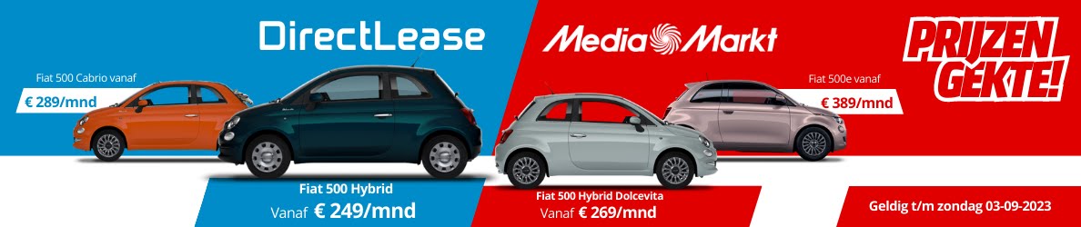 In samenwerking met DirectLease zullen in 48 Nederlandse MediaMarkt vestigingen drie type voertuigen aan consumenten worden aangeboden tegen een zeer scherp leasetarief. Het gaat om de top 5 modellen uit het A-segment: de Fiat 500 1.0 Hybrid, Fiat 500 Cabrio en de Fiat 500 E.