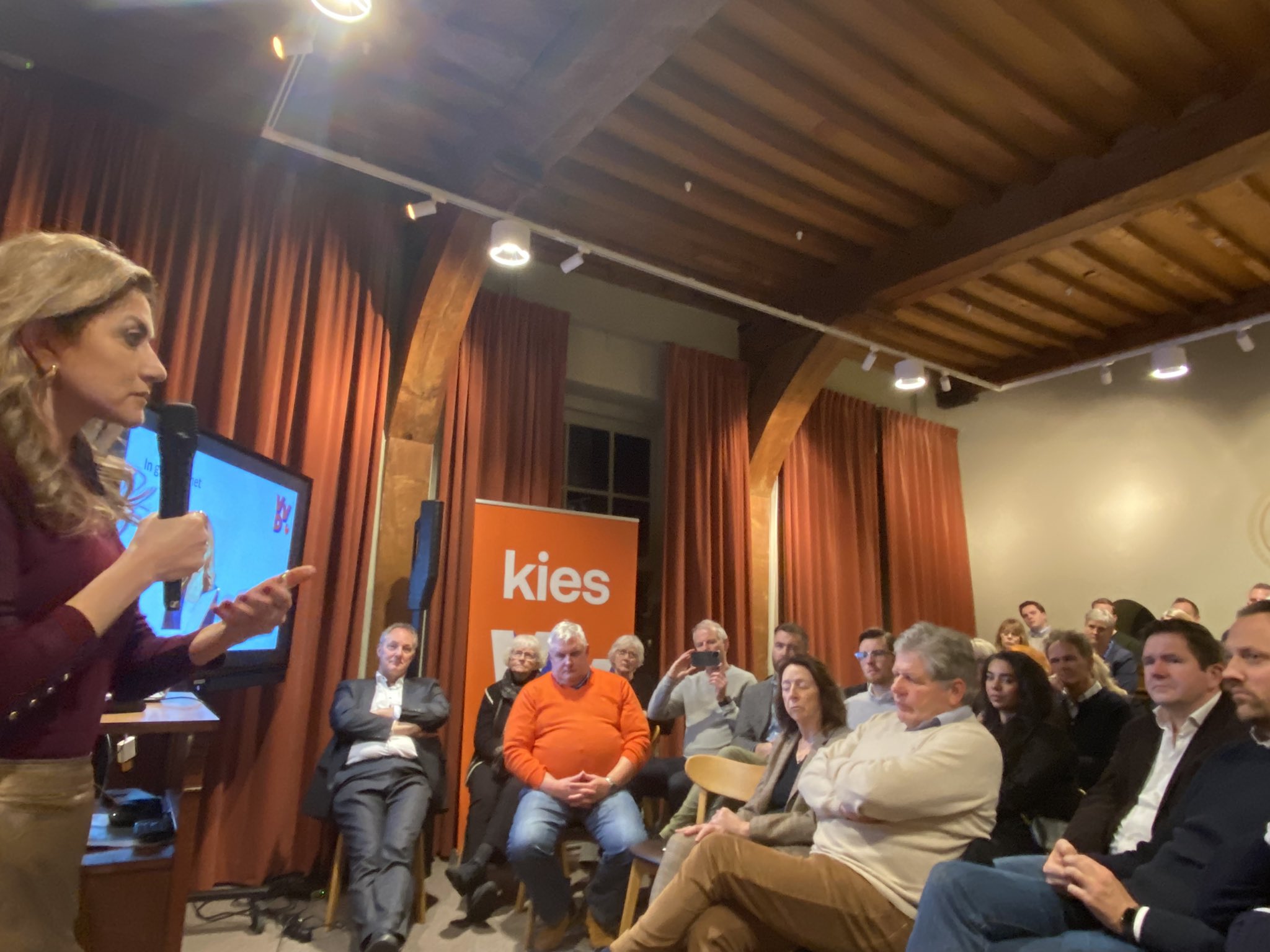 Sombere gezichten bij de VVD in Franeker waar Dilan Yesilgöz vrijdag sprak tijdens de nieuwjaarsreceptie. (foto via X-account Aukje de Vries; bitterballen aan de kleine kant)