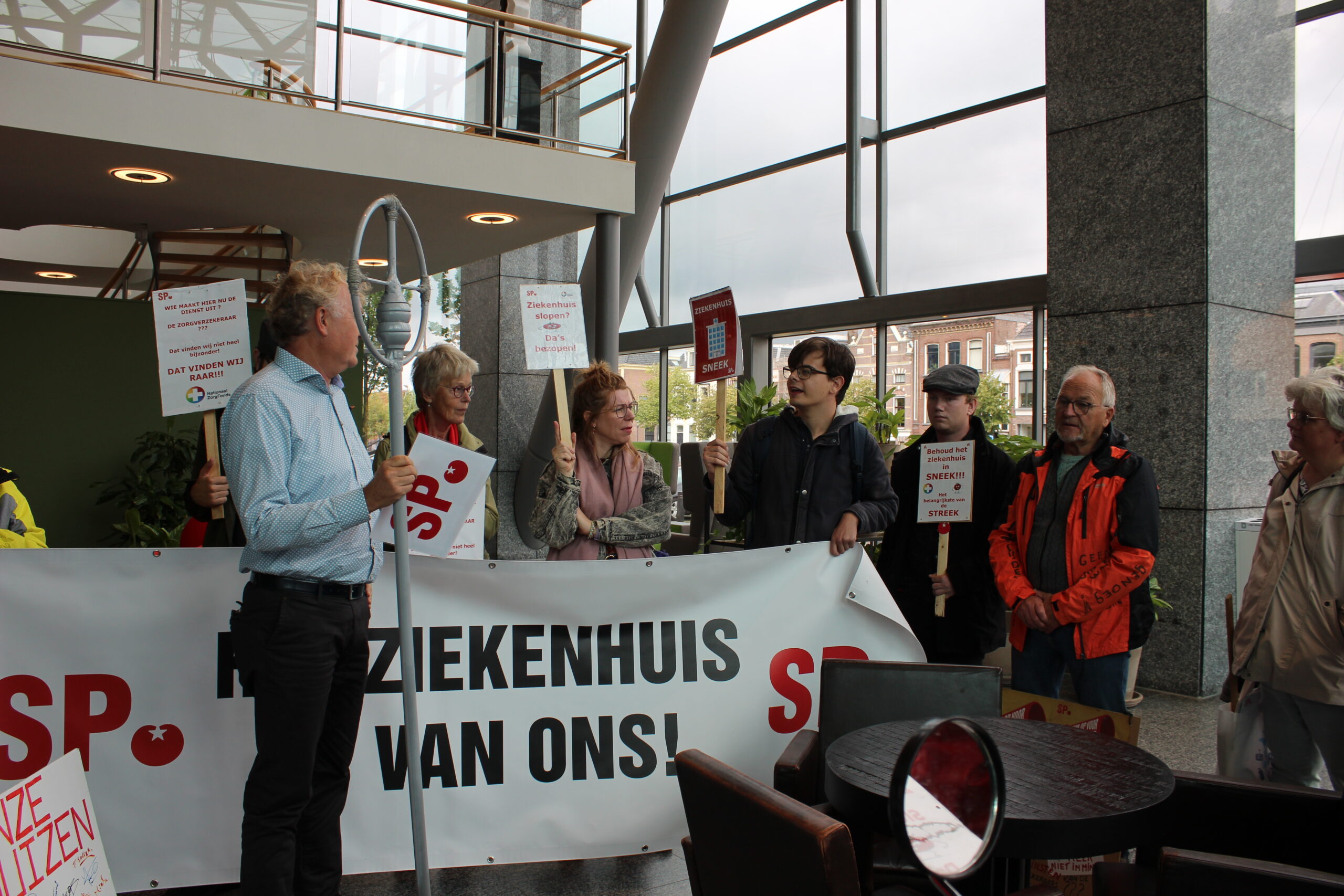 Nadat eerder deze zomer de plannen bekend werden om de ziekenhuizen in Sneek en Heerenveen te sluiten startte de SP direct een handtekeningenactie. Die werd in korte tijd honderden keren getekend. De acties in Fryslân zijn onderdeel van een bredere strijd: in onder meer Zutphen, Zoetermeer en Heerlen organiseert de partij met zorgmedewerkers en bewoners acties voor het behoud van volwaardige ziekenhuizen. De SP roept mensen op ook te tekenen voor het behoud van de ziekenhuizen via https://fryslan.sp.nl/ziekenhuis.
